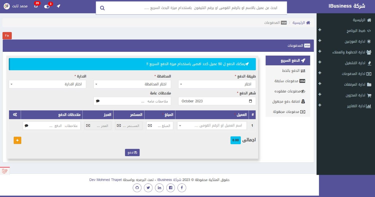 برنامج ادارة شركة اى بيزنس وعملائها ومدفوعاتها