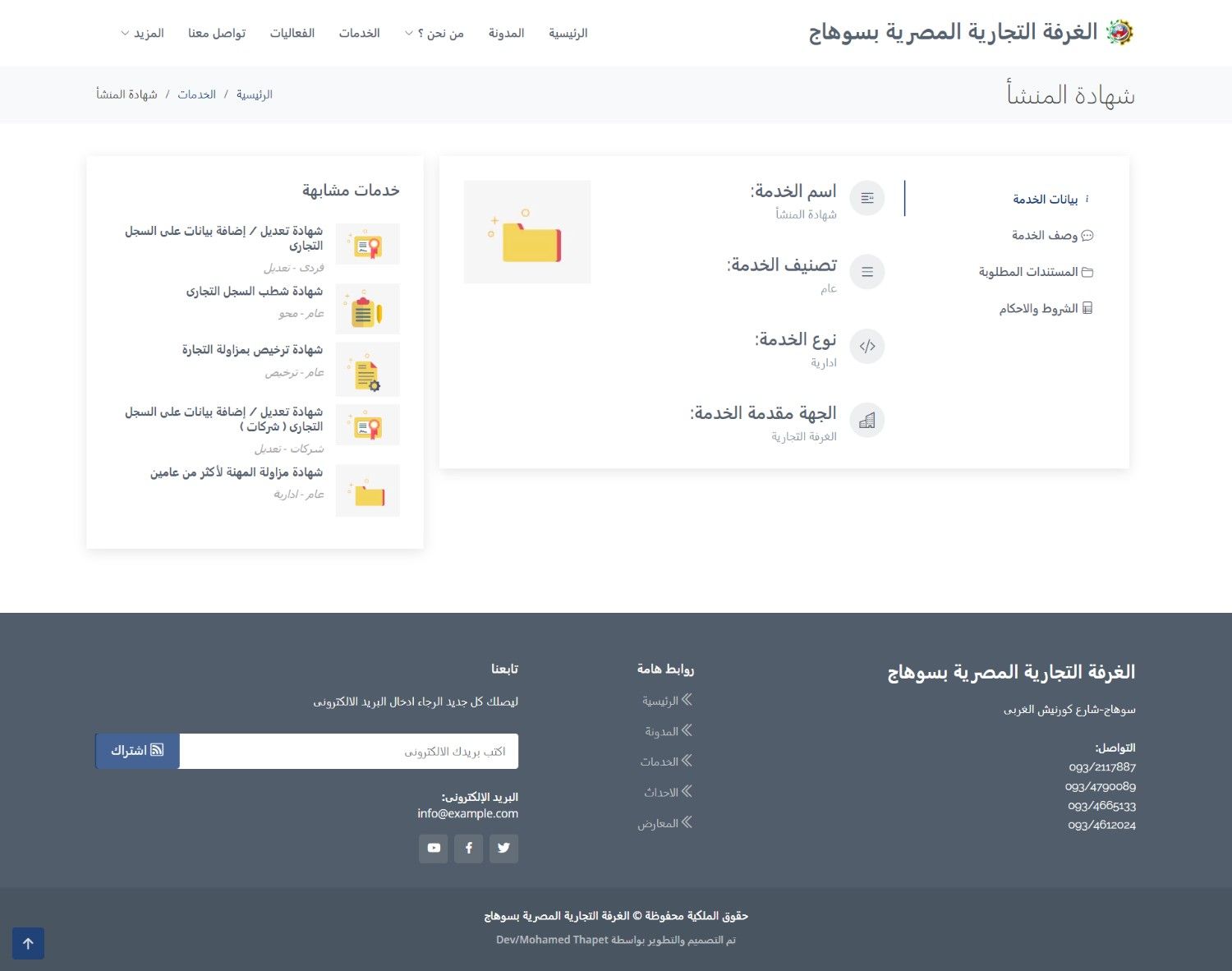 الموقع الخاص بالغرفة التجاريةبمحافظة سوهاج لعرض الخدمات والمعارض والاسعار ومقالات واخبار الغرفة