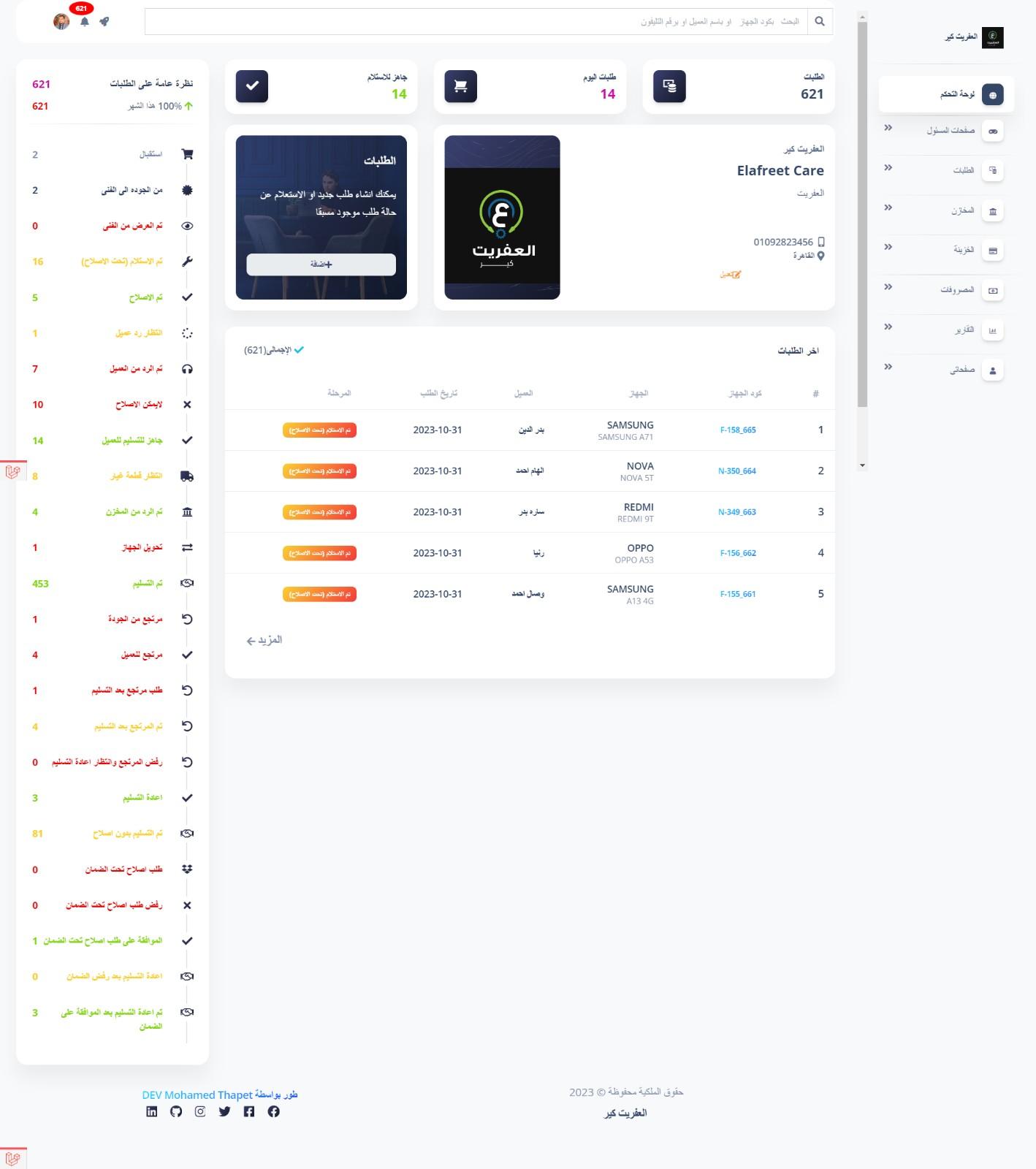 بيع وصيانة واصلاح جميع قطع غيار الموبايل والتابلت وجرد كامل للمخازن والخزينة وتسجيل المصروفات وتقارير كاملة